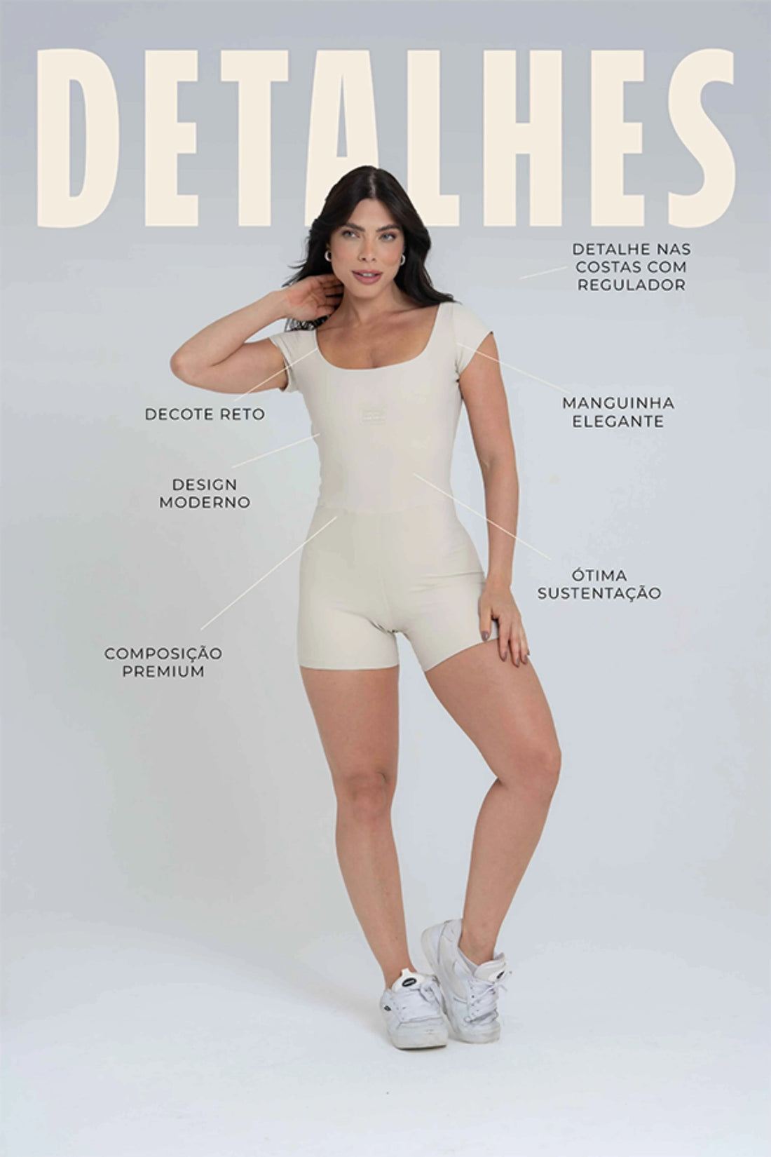 Macaquinho Fitness Native Off White Frente Única - Maré Maria Elegância e Conforto para seus...