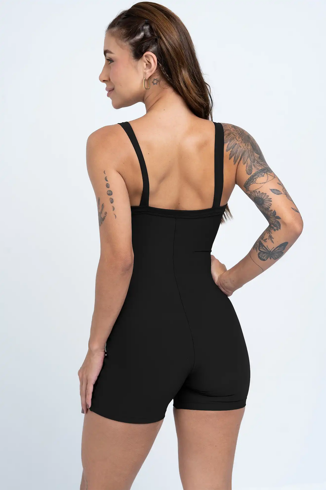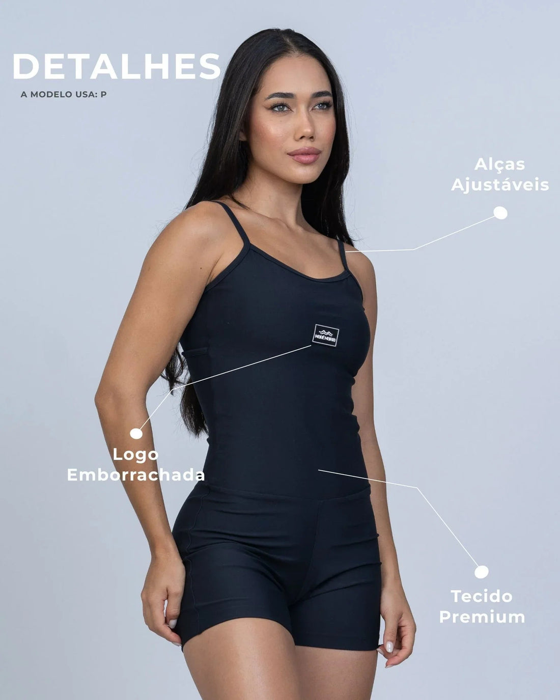 Macaquinho Fitness Native Preto Frente Única - Maré Maria Elegância e Conforto para seus Treinos...