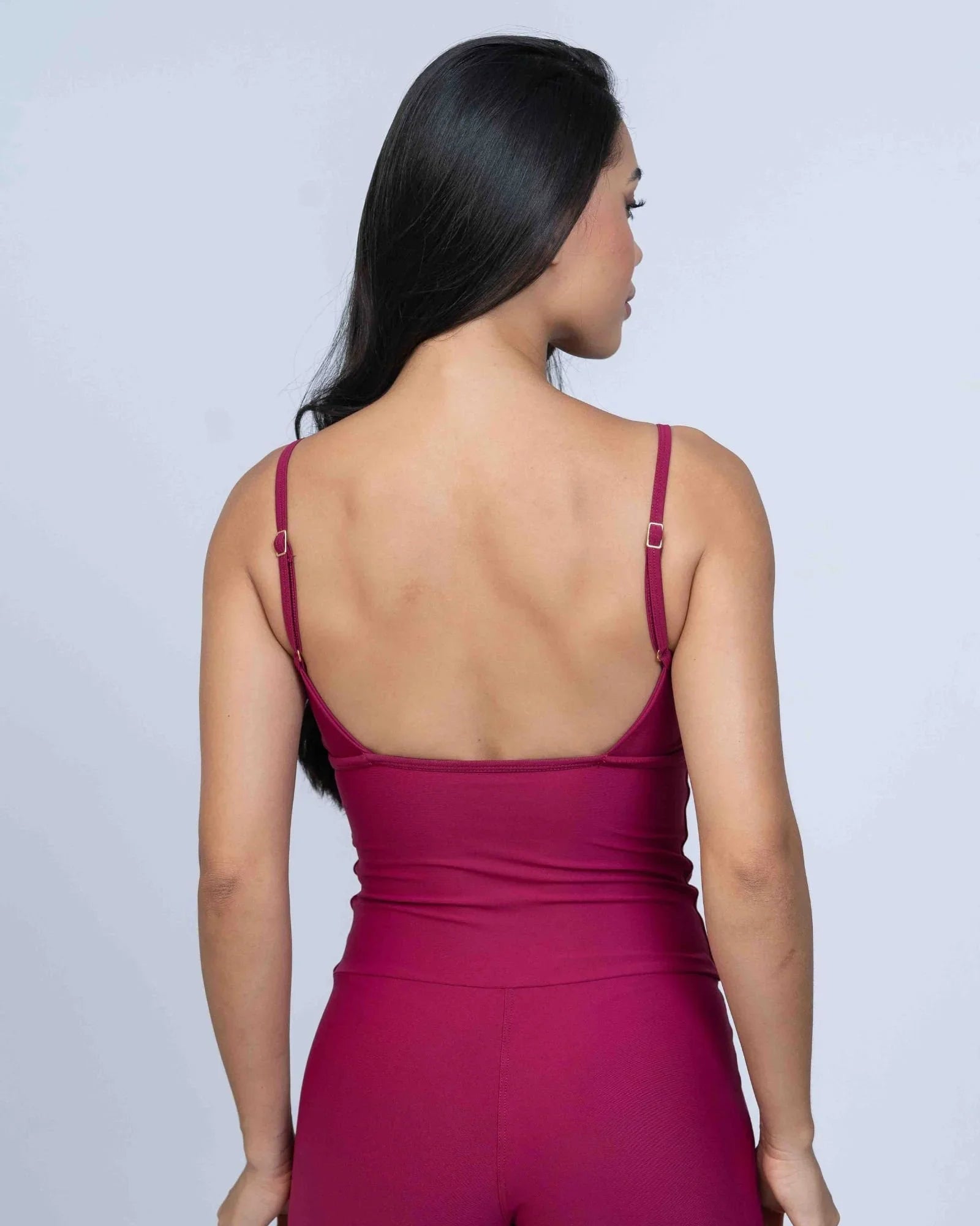 Com alças finas ajustáveis e um recorte quadrado nas costas, este modelo une estilo e praticidade, permitindo liberdade de movimento com compressão moderada. A cor Rouge intensa e vibrante destaca-se, trazendo elegância e versatilidade para qualquer ocasião.