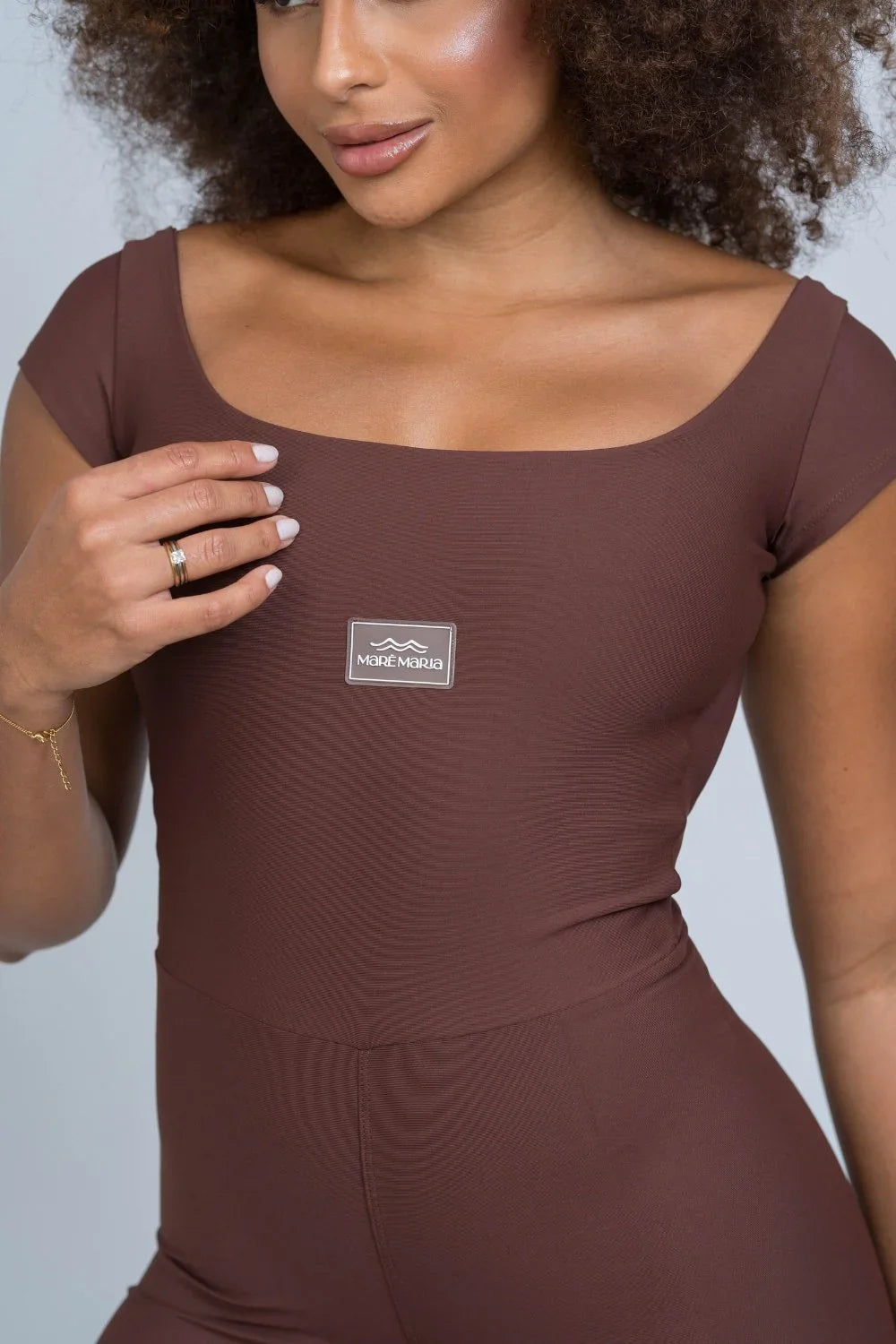 Macaquinho Fitness Wave Chocolate Dark compressão