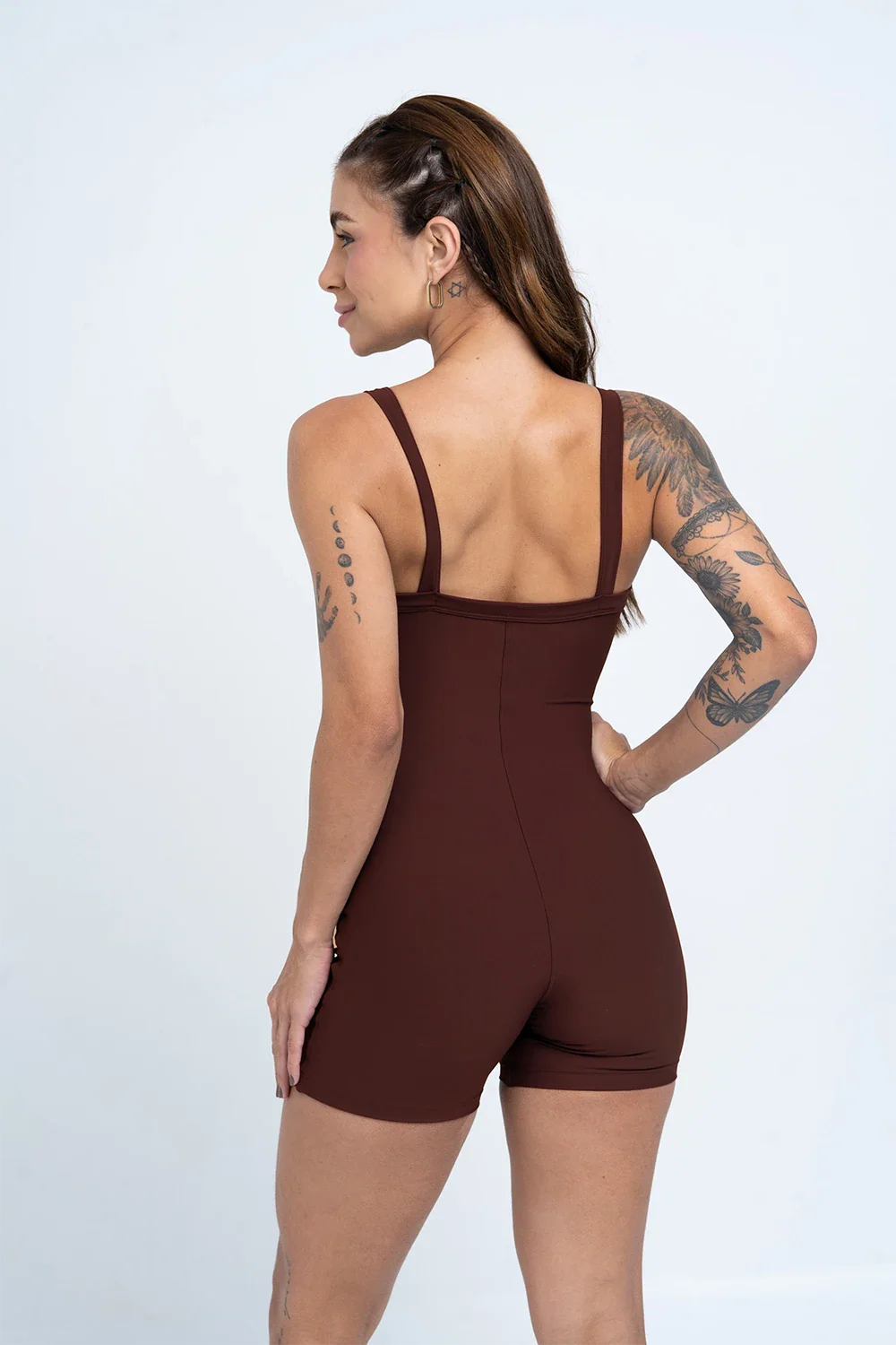 Macaquinho Fitness Flow Chocolate Dark – Estrutura, Estilo e Liberdade em Movimento
