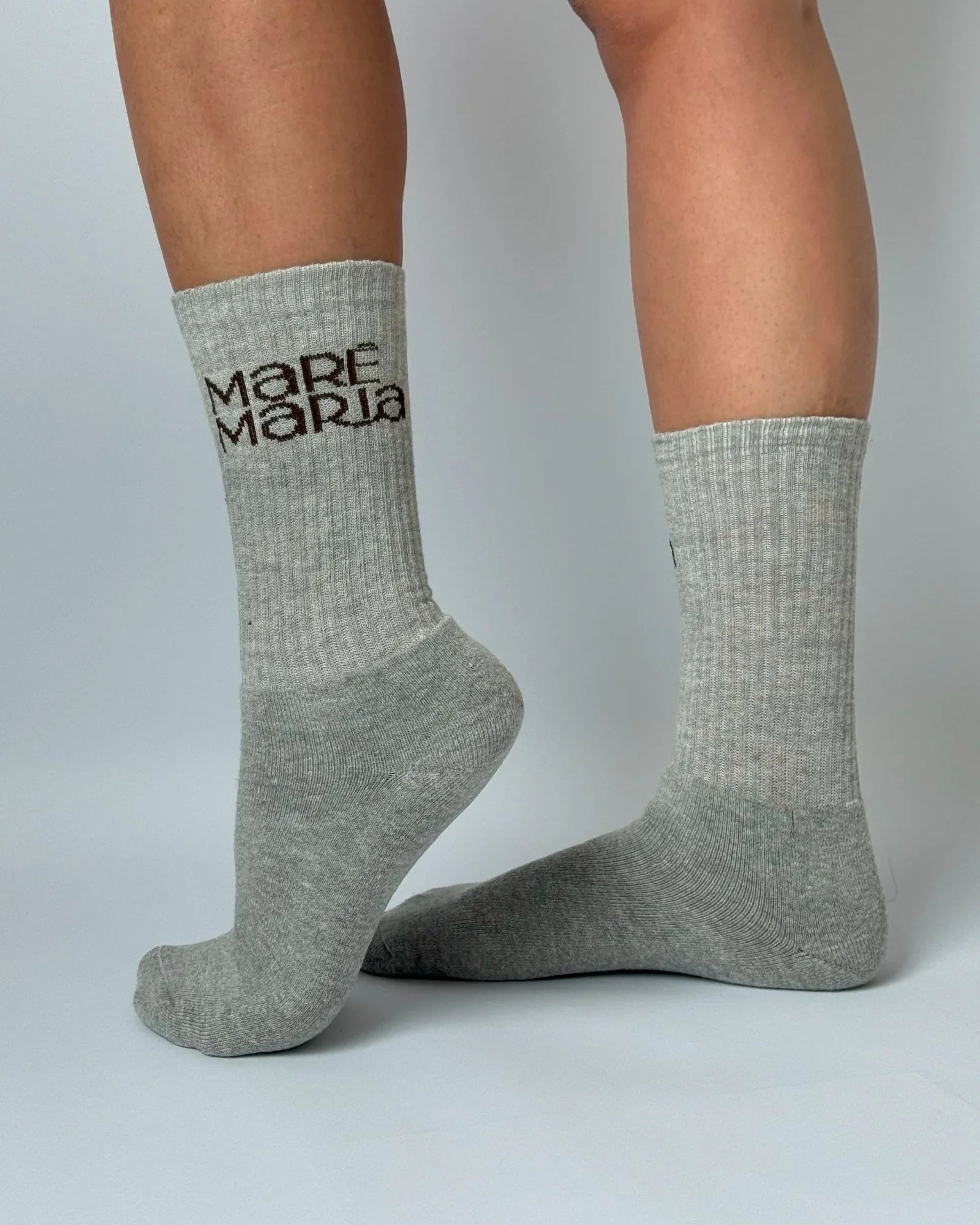A Meia New Branding da Maré Maria apresenta um visual moderno e sofisticado, agora na cor bege mescla com o novo logo em marrom, refletindo a identidade atualizada da marca. Com um design de cano alto, esta meia é ideal para compor looks esportivos e casuais, acrescentando um toque de personalidade e estilo autêntico.