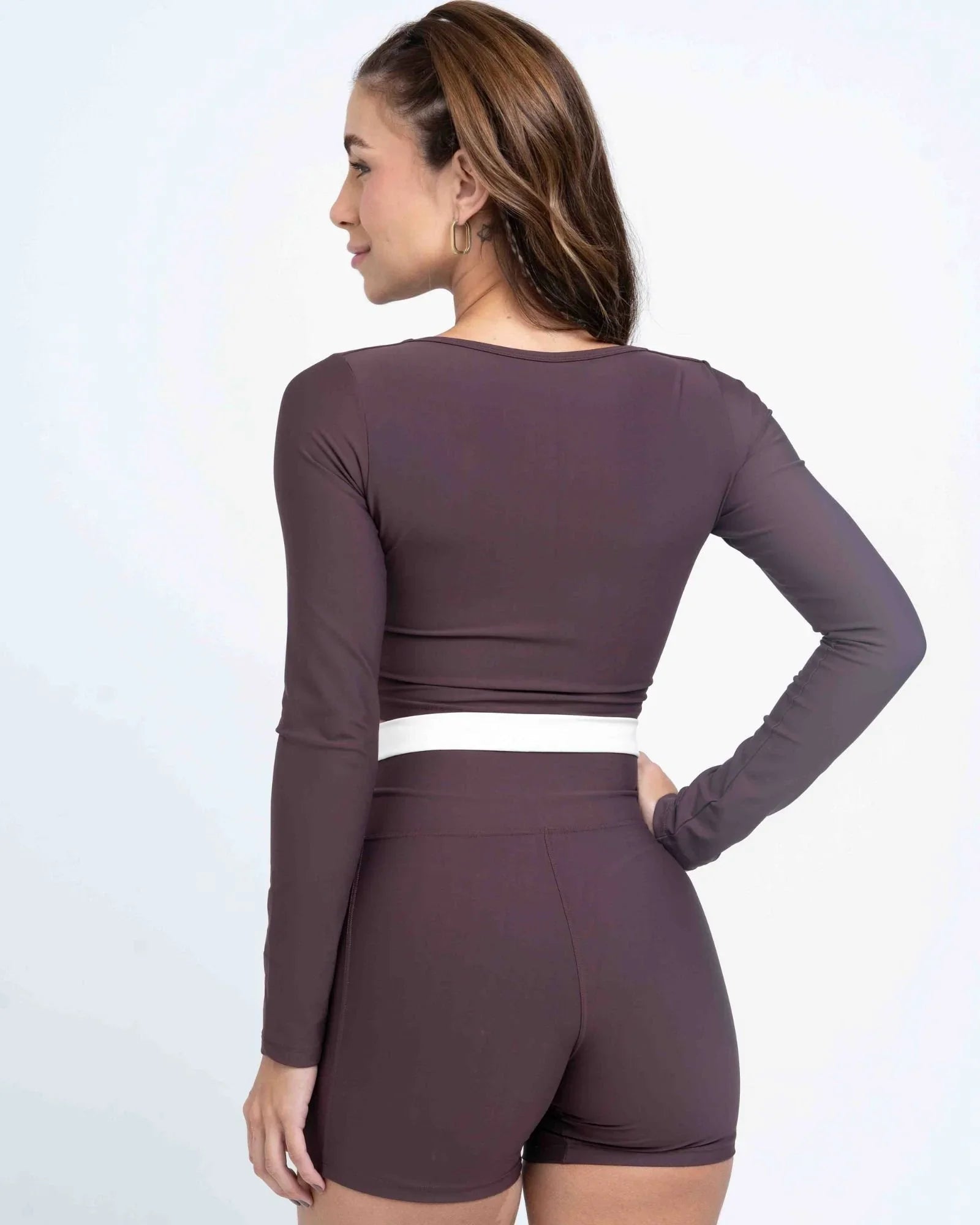 Short Classic Duo Marrom Ébano com Off White compressão sem empina bumbum