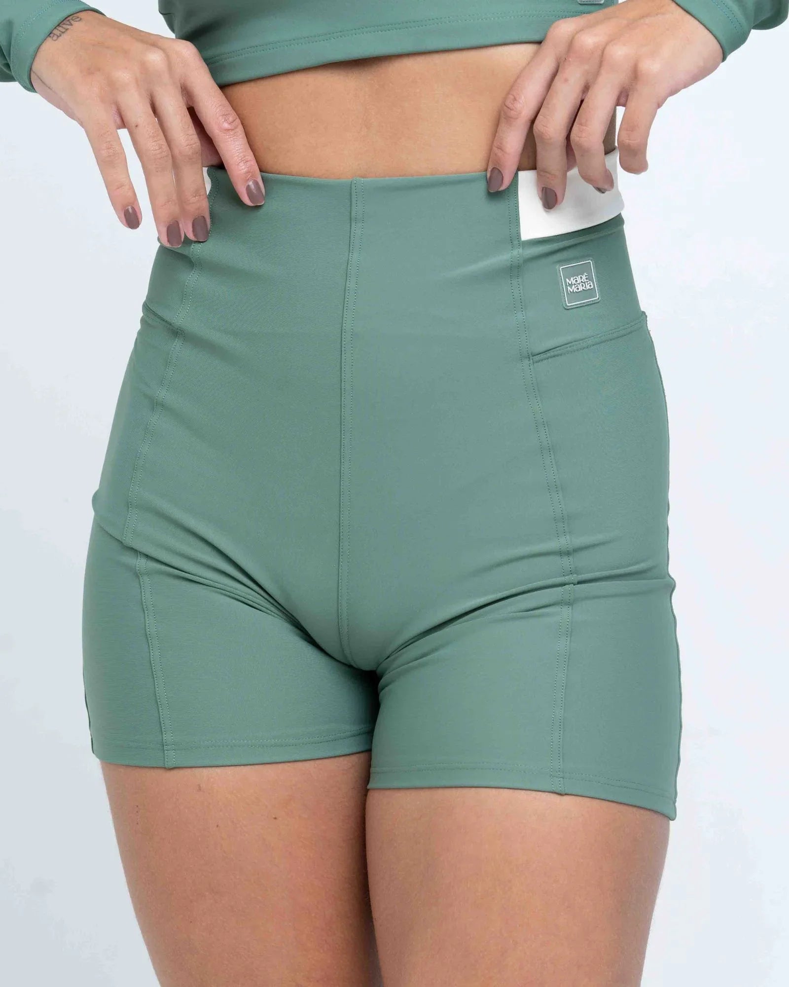 Short Classic Duo Verde Eucalipto com Off White compressão